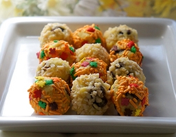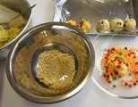 5.スプーン1杯分の生地を丸めて、アーモンドダイスやカラーシュガーなどを好みでまぶします。(写真5)