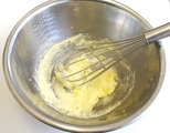 2 ボウルで砂糖とバターを合わせて混ぜます。(写真2)
