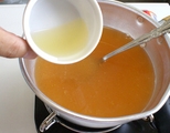 5 火を止めて、レモン果汁とゼラチンを入れて溶かします。(写真4)