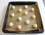 5. 直径2cmくらいのボール型に丸め、180℃に温めたオーブンで約10分、焼き色がつくまで焼きます。(写真4)