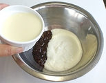 2. ボウルにいちごジャム、プレーンヨーグルト、豆乳を合わせます。(写真1)