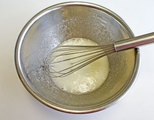 3.小麦粉、溶かしバターを順に加えてよく混ぜます。(写真3)