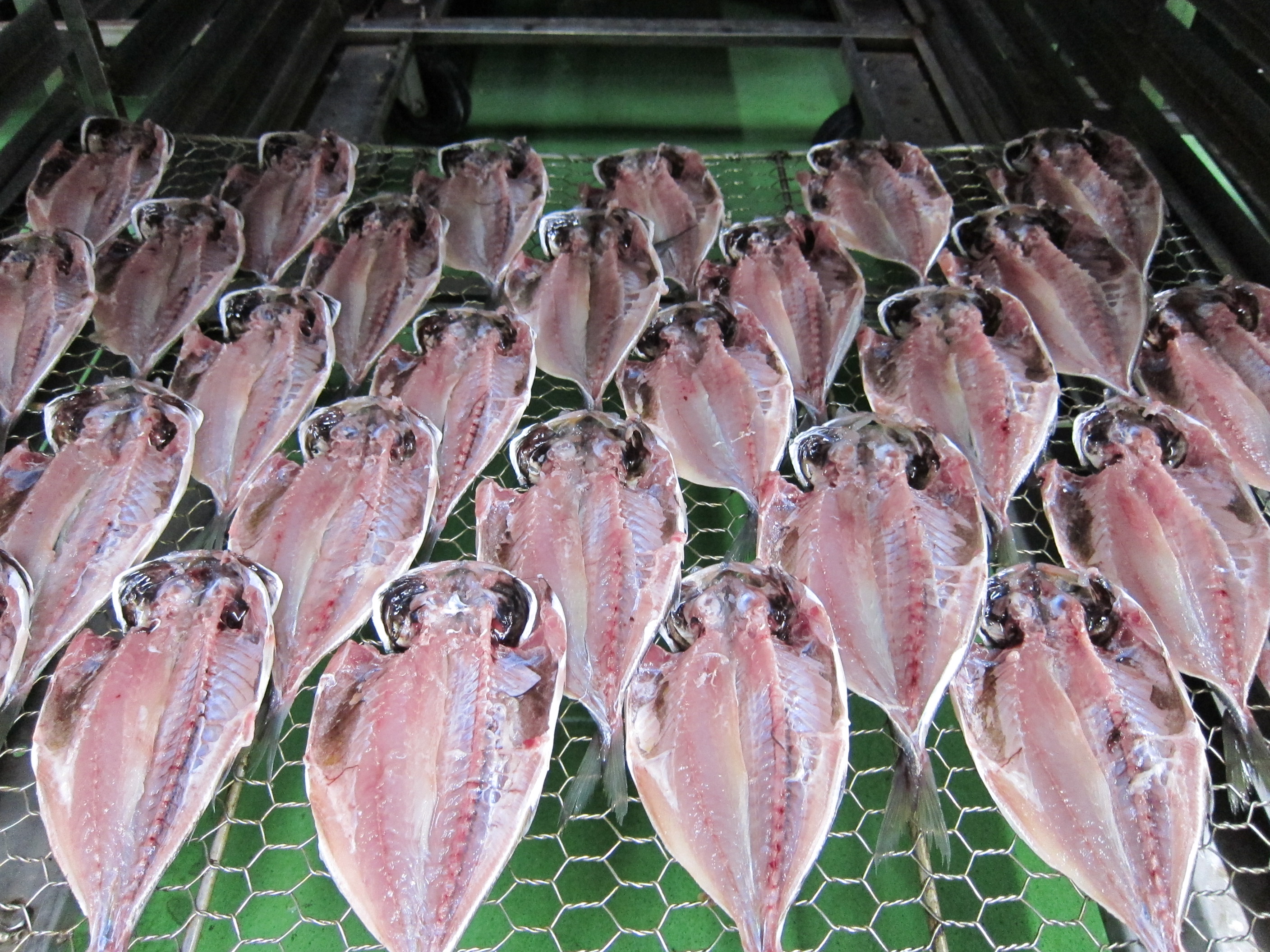 当店のひものは、小田原市内の生産者の方にお願いして製造しているオリジナル商品です。国産にこだわり、相模灘や伊豆沖などで獲れた新鮮な魚を市場のすぐ傍で開いています。魚の種類や季節毎に異なる脂ののり方によって、塩加減を調整し、美味しさをお届けしています。当店取り扱いのひものは、近隣の箱根・伊豆の旅館の朝食にも提供しております。旅のお土産に、夕飯のおかずにぜひお試しください。
