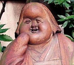 とくに「おかめさん」の持つ袋にお賽銭を入れる方もおられます。浄財は京都で建築物としては最古の寺、通称「おかめ寺」で知られる、千本釈迦堂「大報恩寺」に届けられます。この界隈を回る際には、ぜひ一度お越しくださるようお願い申し上げます。