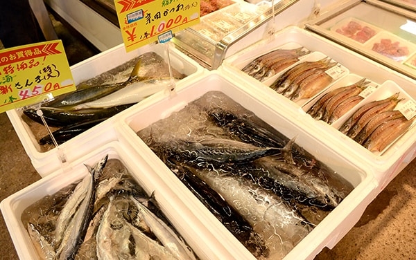 お買いになったその場でさばいて、二枚、三枚下ろしにしたり、煮たり、焼いたり調理いたします。また、真空パックにして宅配できるシステムもご用意